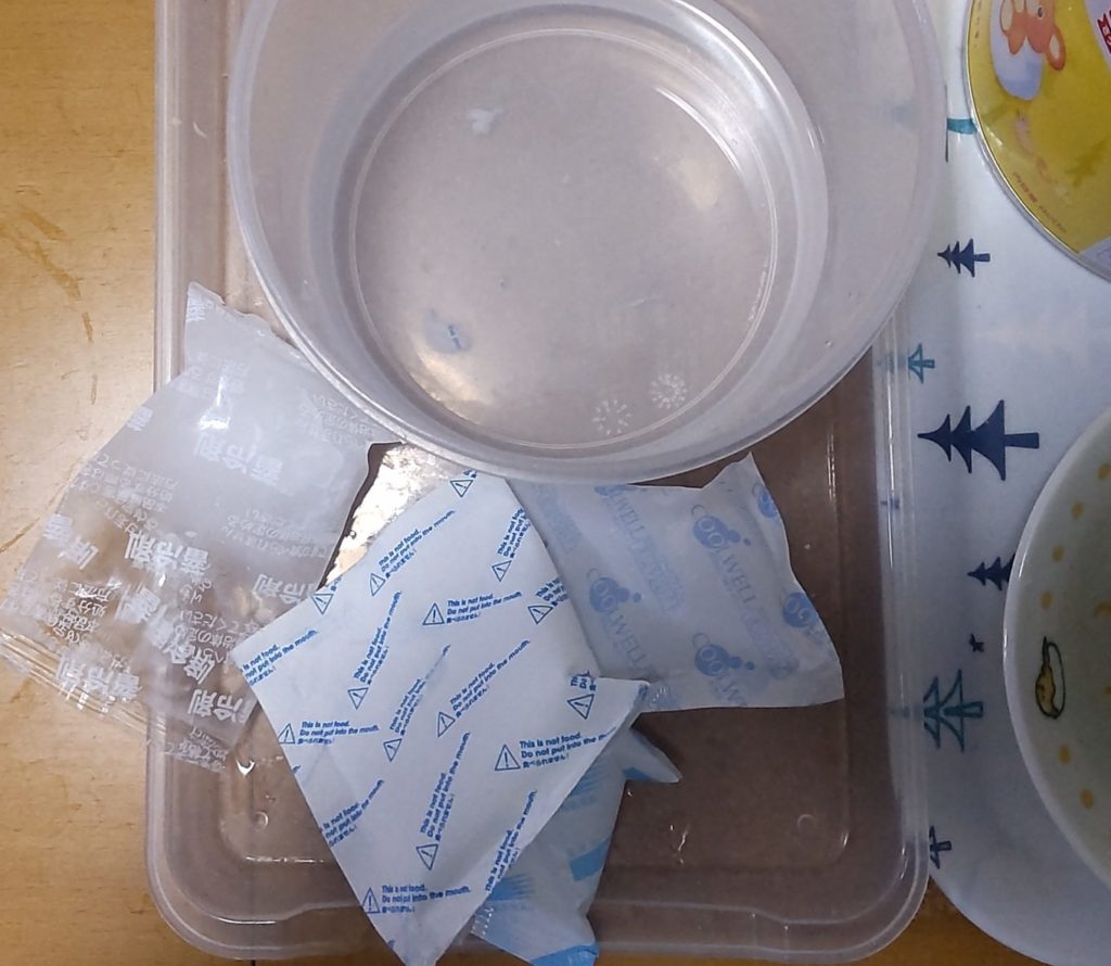 保冷材でミルクを冷やしている間、時間ができるためオムツの確認やその他作業を行います。