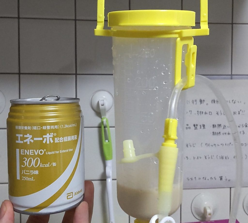 エネーボをイルリガートルに入れます。