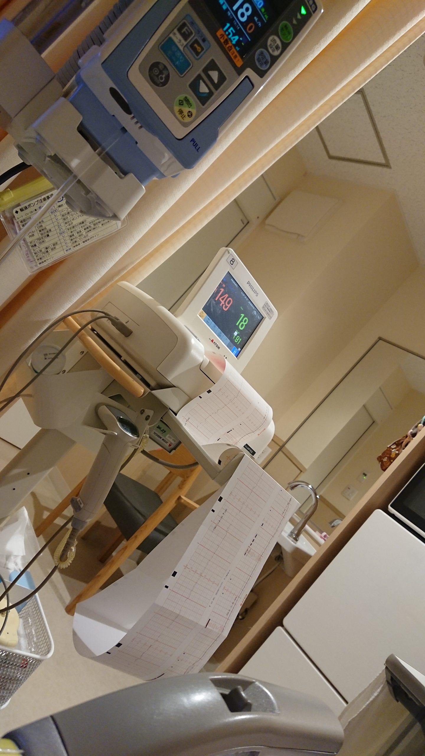 病院について、入院手続きをして病室へ。荷解きを終わらせると次はエコー。